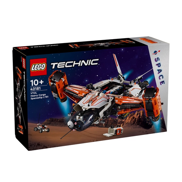 Space enthusiasts can enjoy a build to remember with the LEGO® Technic VTOL Heavy Cargo Spaceship LT81 (42181) for kids aged 10+ who love space plane toys. This futuristic spaceship vehicle toy model has lots to ignite curiosity as kids play out exciting cargo transport missions on distant planets.