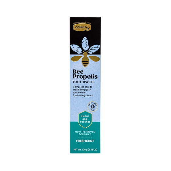 With new recyclable tubes, new formulations and stand up caps, Comvita's bee propolis toothpaste & gels will ensure you natural toothpaste needs are met. Naturally cleans and cares for teeth & gums. Freshens breath