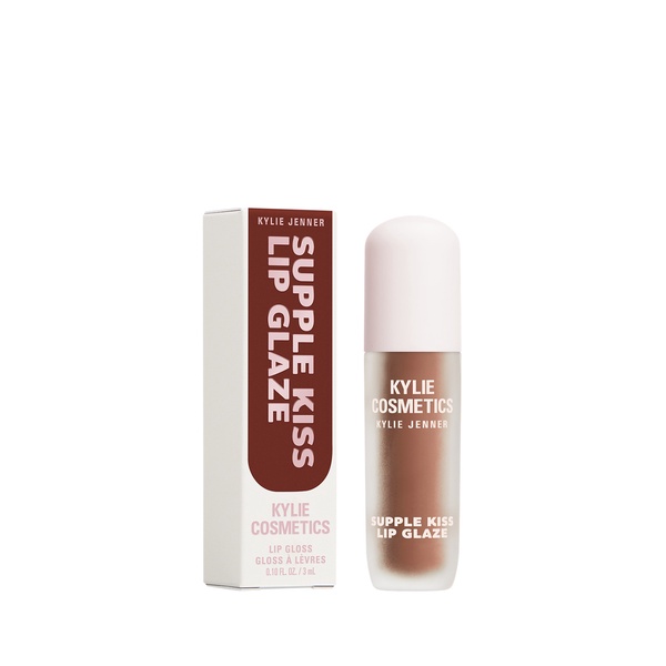 My Supple Kiss Lip Glaze delivers a beautiful glow on the lips with up to 12 hours of hydration and shine. This lightweight vegan makeup formula from Kylie Cosmetics features Bouncy-Wrap Tech with a blend of emollients that envelop lips in a gel-like glaze for an extra-bouncy and cushiony feel with gleaming shine. This lip gloss glides on effortlessly for a fuller-looking pout, a mirror-like wash of color and lips that are hydrated all day . The shade Lovable is a taupe brown.