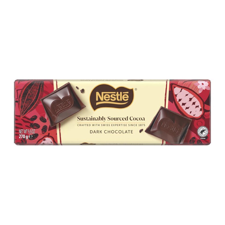 Enjoy a delightful chocolatey moment during your travels with the taste of NESTLE Sustainably Sourced Cocoa Dark Chocolate Tablet. Deliciously rich and smooth dark chocolate. At the heart of our chocolate is sustainably sourced cocoa, so you can enjoy chocolate that does good* and tastes great. The perfect accompaniment to any adventure, for sharing with friends and family along the way.
