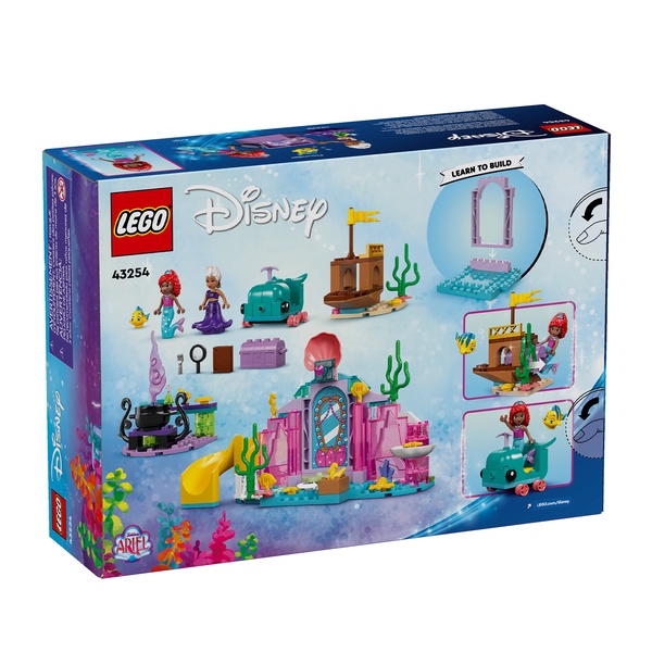 Exploration and play awaits kids aged 4+ as they learn to build with this LEGO® ǀ Disney Princess Ariel’s Crystal Cavern (43254) building toy. This buildable mermaid playset gift helps boost kids’ problem-solving skills with creative play. Inside is a cavern with a spinning platform and slide, a whale vehicle, a shipwreck with a treasure chest and a cauldron. It also includes Ursula and Ariel LEGO ǀ Disney mini-doll figures and a Flounder LEGO ǀ Disney fish figure. The building kit includes a Starter Brick element to get building underway quickly, and instructions are provided in a colorful picture-story guide for kids who are just starting to learn how to read. This 4+ LEGO building set for kids is easy to take on playdates and is a great way for adults to share in the building fun with youngsters.