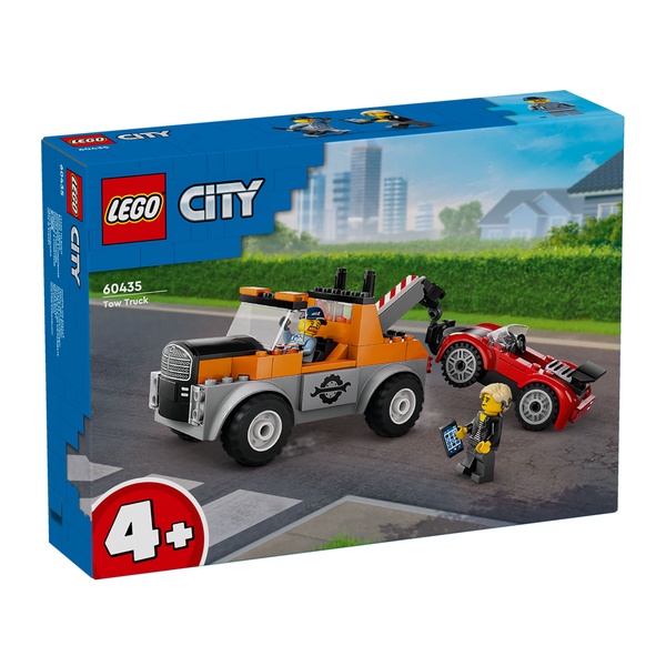 Join your everyday hero for fun adventures with the LEGO® City Tow Truck and Sports Car Repair playset (60435) for ages 4+. This creative building set features a toy tow truck with rugged tyres, a driver’s cab and a working hoist. Just add the sports car and driver and motorist minifigures for hours of imaginative play and storytelling.