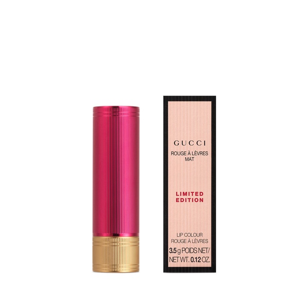 For this season, Gucci has reinvented its iconic and inclusive matte lipstick shades dressed in exclusive packaging to encapsulate the vibrant energy of the festive season, the perfect Christmas gift. The Formula Rouge à Lèvres Mat Gucci lipstick delivers bright and beautiful colour with a soft and velvety feel that glides on effortlessly. It has a silk-like texture enriched with oils and gelling waxes for a comfortable finish without drying out lips and without smudging. The Range Gucci Beauty Rouge à Lèvres Mat Lipstick dresses lips with our timeless shades 217 Valeria Rose and 505 Janet Rust The Design The vintage-inspired ribbed cap on this lipstick is now dressed in a collectable shade of bright red that ignites pure joy with every application.