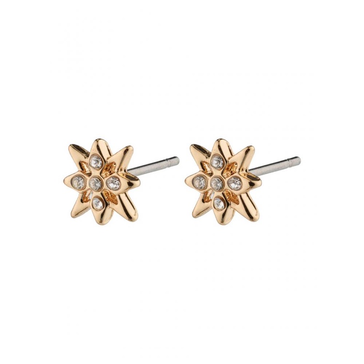 A glittering star sparkles on the rose gold-plated stud earrings from Pilgrim's RAIN collection. The beautiful eternal star motif is decorated with tiny Preciosa crystals that catch the light and twinkle in your eyes. A small statement about the beauty of the sky in a poetic design. The earrings are recycled items and made from min. 75% recycled material.