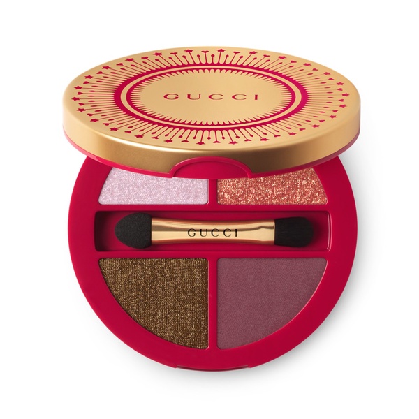 For this season, Gucci has adorned its Palette de Beauté Quatuor eyeshadow palette in captivating red and gold hues, designed to evoke moments of joyful connection through shared gazes, the perfect Christmas gift. Explore your "multiple selves" layer after layer with Gucci Palette de Beauté Quatuor - Gucci Beauty's quad palette for eyes now available in a new exclusive harmony. The eyeshadow palette includes four, buildable colours that blend easily, offering endless possibilities to create striking looks throughout the festive season. The Formula Easy to apply and comfortable to wear, its ultra-thin creamy texture fits every skin type. Powder formulas in amazing colours provide long-lasting wear with matte and shimmer finishes to be used as eyeshadow. The Range The exclusive harmony 'Festive Glow' features an array of festive pink and brown eyeshadow shades in both shimmering and matte finishes: Pink Glow - a soft shimmering pink Fiery Coral - a vibrant coral shade Royal Bronze - a rich brown Soft Burgundy - a deep burgundy The Design Designed to be an object of desire, Palette De Beauté Quatuor is encased within a covetable vintage-inspired case now adorned with a star pattern. This eyeshadow palette is the perfect on-the-go tool for gifting to yourself or a beloved friend.