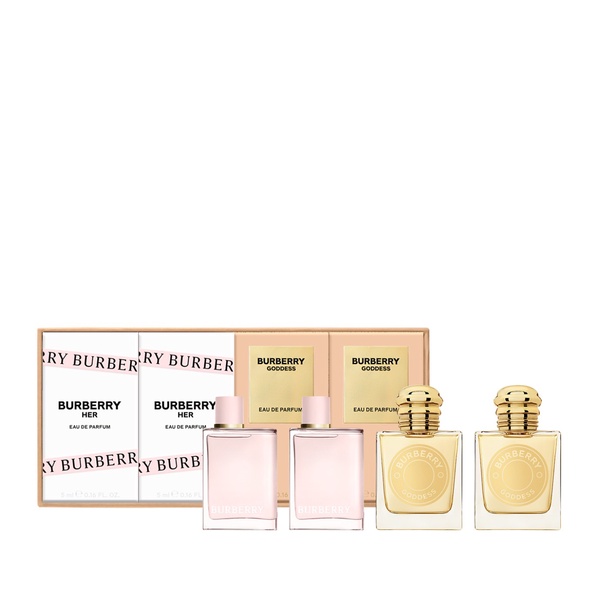 This set contains: - 2 x Burberry Her Eau de Parfum, 5ml (0.1fl oz) - 2 x Burberry Goddess Eau de Parfum, 5ml (0.1fl oz)