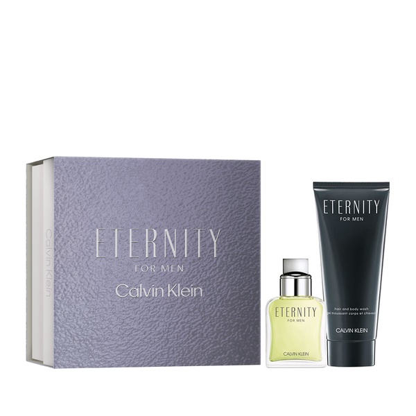 This Eternity for Men gift set contains: - Eternity 50ml (1.6oz) Eau de Toilette for Men - Eternity 100ml (3.3oz) Shower Gel