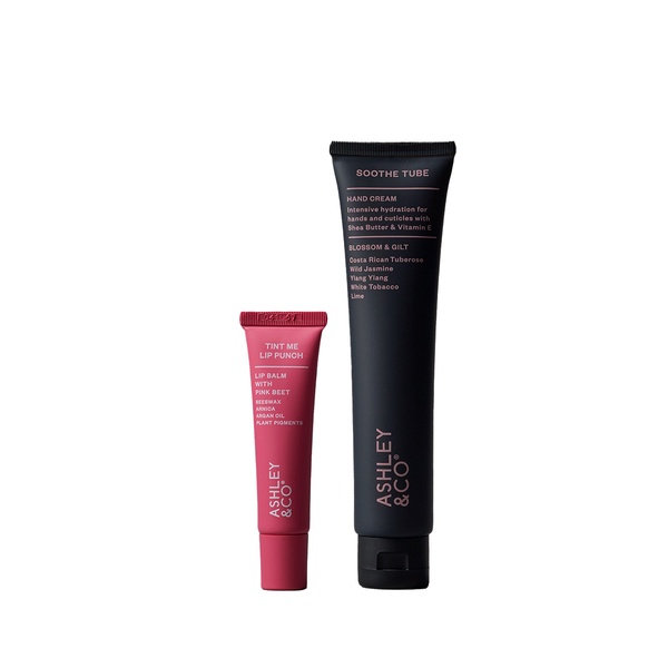 This set contains: Soothe Tube Blossom & Gilt Hand Cream 75ml, Tint Me Lip Punch Pink Beet 15ml