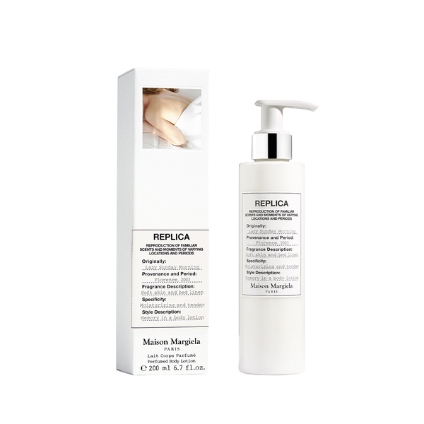 A moisturizing and tender body lotion to recreate the Lazy Sunday Morning cocooning memory every day of the week. Delicately perfumed with REPLICA’s iconic Lazy Sunday Morning scent, this body lotion contains a complex of hydrating agents, shea butter, colza oil & vegetal glycerin that help to recreate the comforting sensation of soft cotton sheets on your skin. Lazy Sunday Morning body lotion is a delicate floral scent that conjures up memories of lingering Sunday mornings in bed. There’s nothing you need to do, and nowhere you need to go, just take it easy. The body lotion recreates the enveloping and delicate sensation of freshly washed linen on your skin thanks to the association of clean and pure Lily of the Valley and comforting White Musks. Together, the powdery Iris and Ambrette seeds evoke the sensation of morning sunrays gently warming your skin. This body lotion absorbs quickly to leave your skin hydrated, silky smooth and radiant, your skin feels toned and protected from dryness. You can use this body lotion on its own or in complement of your fragrance to intensify the scent.
