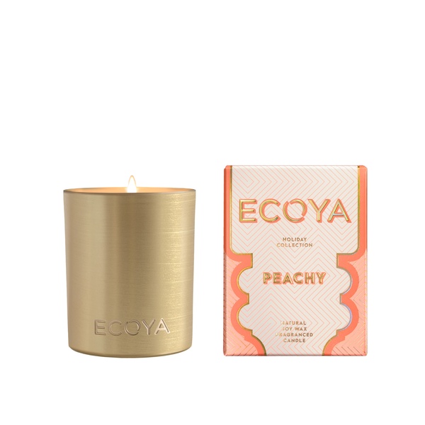 The Mini Goldie Candle is the perfect addition to any space. Our Holiday Collection fragrances are poured into a petite and covetable brushed gold aluminium vessel, a limited edition available for the holiday season. The Mini Goldie Candle provides a delicately scented burn for up to 30 hours. A peachy sun-kissed paradise. Juicy peach, summer berries and tropical pineapple with hints of orange blossom and a touch of gardenia. It’s a peach beach party and everyone is invited.