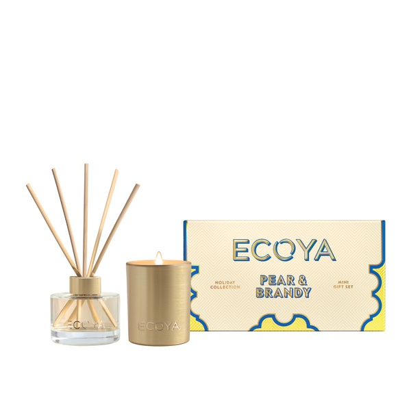 Indulge in the magic of the season with the perfect pair. This home fragrance duo is presented in a festive gift box and includes our Mini Goldie and Mini Diffuser available in all three Holiday Collection fragrances, Fresh Pine, Pear & Brandy and Peachy. The fragrance equivalent of a velvet-clad holiday soirée - classy with a touch of spice. Green pear, brandy, and lime with rose and jasmine, while cedar and musk add the spicy twist.