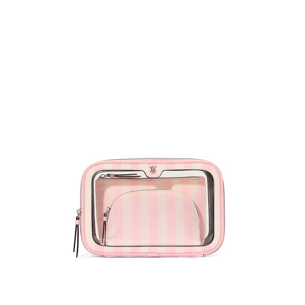 Victoria's Secret 3-Piece Makeup Bag Iconic Stripe