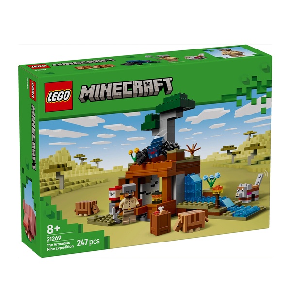 The Armadillo Mine Expedition (21269) toy lets Minecraft® players get hands-on with the popular video game. With cool characters and fun features, this LEGO® Minecraft toy is a thrilling gaming set packed with imaginative play possibilities for kids aged 8 and up. Set in the game’s savanna biome, the model features a mine with a lever-controlled TNT function that blasts away a piece of the terrain to reveal precious ore. There is a cave spider toy and a wolf, plus 2 armadillos, which provide the scutes used to craft wolf armor. At the side of the mine there is a small river and a lava fall. The set easily rearranges to inspire new adventures. For extra digital fun, the LEGO Builder app lets kids zoom in and rotate models in 3D using their device.