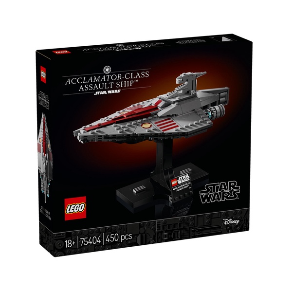 Be transported to the drama of the Battle of Geonosis as you build the first-ever LEGO® Star Wars™ construction model of an Acclamator-Class Assault Ship (75404). This Star Wars collectible build-and-display starship model captures many authentic details of the iconic vehicle seen in Star Wars: Attack of the Clones™. Enjoy quality time immersing yourself in the complex, rewarding build, and display your creation on the stand with a nameplate.