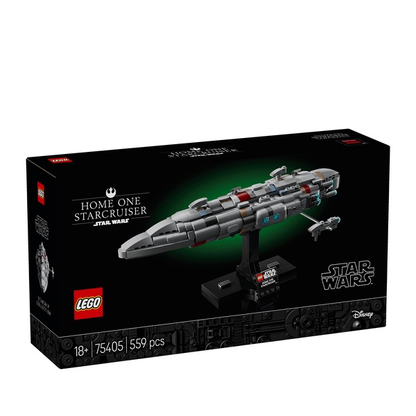 Inspire nostalgia for Star Wars: Return of the Jedi™ with the first-ever LEGO® Star Wars™ brick-built model of the Home One Starcruiser (75405) commanded by Admiral Ackbar at the Battle of Endor. A fun Star Wars gift for adults, this buildable starship model kit offers a complex, rewarding creative experience. Recreate authentic features of the Rebel Alliance fleet’s flagship frigate and display it on the buildable stand with a nameplate. The side section can be detached to view interior details, and the set also includes a small, brick-built Nebulon-B Medical Frigate that can be displayed ‘flying’ alongside Home One.This collectible build-and-display set is part of the mid-scale LEGO Star Wars Starship Collection and makes impressive room decor in any Star Wars fan’s home.Get the most out of this fantasy vehicle building set with the LEGO Builder app, which lets you zoom in and rotate a 3D version of your construction model as you build and more.