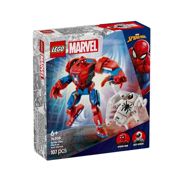 Spider-Man Mech vs. Anti-Venom (76308) is an ideal buildable LEGO® Super Hero toy for kids who love mechs, minifigures and Marvel-movie action. This premium-quality LEGO Marvel playset will put endless imaginative adventures with a fully jointed buildable Spider-Man figure into the hands of young Super Heroes aged 6 and over.