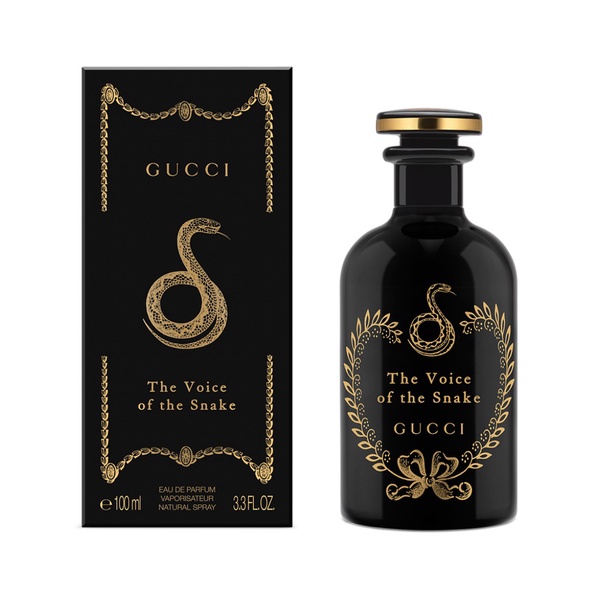 GUCCI THE ALCHEMIST’S GARDEN Gucci The Alchemist’s Garden reimagines the four stages of ancient alchemy. The Substratum stage: Gucci The Voice of the Snake Eau de Parfum. THE VOICE OF THE SNAKE EAU DE PARFUM Hypnotizing Oud Wood accord merged with earthy Leather. WOODY. LEATHERY. HYPNOTIZING FRAGRANCE FAMILY: WOODY LEATHERY An intense, woody fragrance of a hypnotizing nature. Its Oud Wood accord is inspired by the trees it originates from, while the Patchouli is created from dried leaves. Accords of Leather and Saffron pierce the scent with spicy, powdery, leathery accents. Two qualities of Cedarwood deepen its woody energy, while a solvent-extracted maceration of Cistus absolute adds herbaceous, floral accents. THE BOTTLE Encased in a black bottle to reflect this earthy, woody perfume. A snake seals the scent as a hypnotizing symbol that evokes the creature slithering across a forest of dry leaves. OLFACTIVE ALCHEMIST Master perfumer Alberto Morillas’ combination of Oud Wood accord, the multifaceted qualities of Leather, and solvent-extracted Cistus macerations creates this earthy, calcinated facet.
