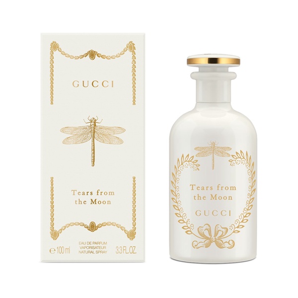 GUCCI THE ALCHEMIST’S GARDEN Gucci The Alchemist’s Garden reimagines the four stages of ancient alchemy. The Vaporum stage: Gucci Tears from the Moon Eau de Parfum. TEARS FROM THE MOON EAU DE PARFUM Explore the musky majesty of the Damascena Rose. ILLUMINATING. DEWY. ALDEHYDIC FRAGRANCE FAMILY: FLORAL MUSKY Tears From the Moon is built around the Damascena Rose, which is enveloped in an aldehydic bouquet of white flowers. Illuminating White Peony and Stephanotis are gently extracted to preserve their pure, delicate freshness and to enhance the luminous richness of the Damascena Rose, just as the green dewiness of Lily of the Valley Accord enriches its pure florality. A powdery note of Musk wraps the whole scent in a voluminous, airy cloud. THE BOTTLE This scent is encased in a white bottle to reflect the airy luminosity extracted from the white floral bouquet. The dragonfly is a free and joyful symbol that signifies hope. OLFACTIVE ALCHEMIST Master perfumer Alberto Morillas sublimates matter to reflect the powerful aerial signature of the Damascena Rose.