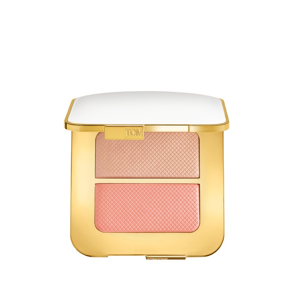 This expertly-designed highlighter and blush duo creates an impeccably sensual, sunlit glow. The peachy hue mimics the sun reflecting off the skin, while the rosy shade imparts the perfect touch of color. Use shades alone or together to contour a natural effect with sheer to medium coverage.