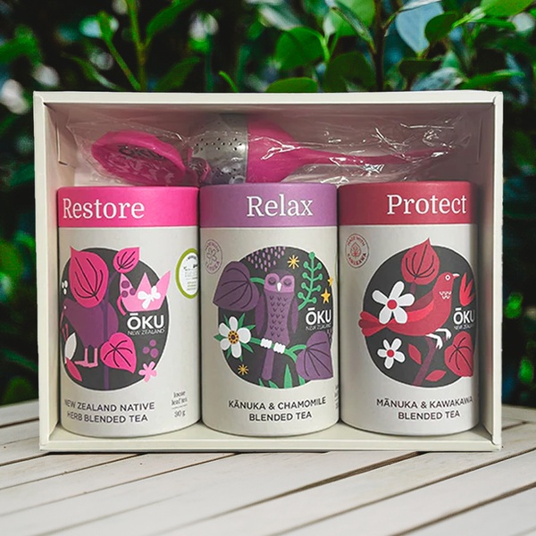 This set contains: 1 x Protect 15 tea bags, 1 x Digest 30 g loose leaf, 1 x Circulate 15 tea bags, 1 x tea strainer.