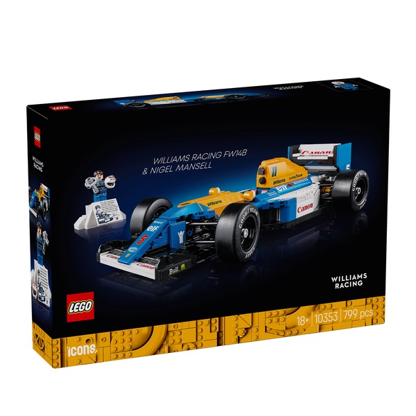 Hail the history of F1 innovation with the LEGO® Icons Williams Racing FW14B & Nigel Mansell (10353) home and office desk decor model building kit for adults. Craft a replica of the legendary F1 race car that propelled Nigel Mansell to victory in the 1992 Formula 1 World Championship. Complete with a Nigel Mansell minifigure, this premium display model makes a captivating centrepiece and a great Christmas or birthday gift for fans of F1.