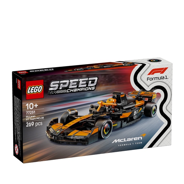 The F1 model car features a cockpit that opens by lifting the halo bar, a rear wing, wishbone suspension, sponsor stickers and wider rear tyres imprinted with “Pirelli”. The toy vehicle also comes with a driver minifigure wearing a McLaren outfit and a winged helmet to place inside the cockpit for racing action.