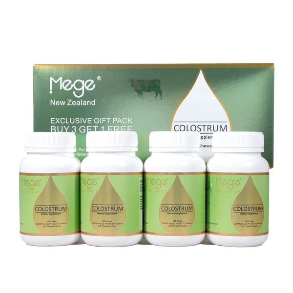 Mege Colostrum Milk Chews 200000mg 200 Tabs 3 + 1 Gift Pack