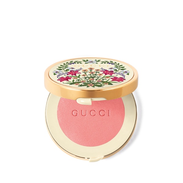 Gucci Beauty presents the Gucci Flora Gorgeous Gardenia Blush de Beauté Limited Edition, the House’s first makeup powder blush elegantly encased in a vintage-inspired compact adorned with the floral Gucci Flora print. Smooth, playful and multi-use, it can be applied to both cheeks and eyes, allowing for looks that range from a delicate flush to daring color. Available in Gucci’s two best-selling shades: #01 ‘Silky Rose’ and #04 ‘Bright Coral.’