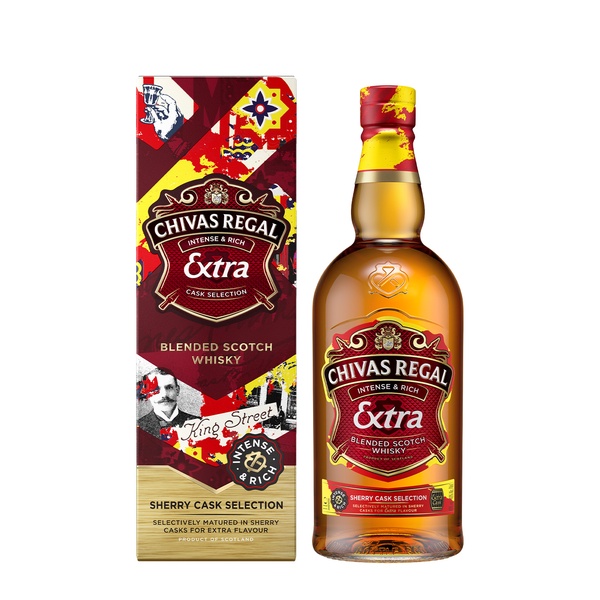 Chivas Regal Extra Sherry Cask is bursting with the rich fruity aromas of ripe pears and melons, then comes the subtle sweetness of both creamy toffee and milk chocolate to fill your senses. Rich deep flavours of sweet ripe pears in syrup balanced with the luxurious taste of vanilla caramels and cinnamon sweets. The tantalising finish is full of spicy notes of cinnamon and ginger which dance around in the background overlaid with hints of a sweet Sherry nuttiness.