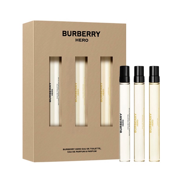 How To Use: This festive season, embrace the joy of the holidays at home – a place where excitement fills the air as memorable moments are made between friends and family. Treat yourself or your loved ones with an on-the-go selection of Burberry Hero scents. Embrace your extraordinary. Discover a selection of intense and invigorating fragrances based on a trio of cedarwood oils, creating scents that balance strength with refined elegance. This set includes: • Burberry Hero Eau de Toilette Travel Spray, 10ml (0.33oz) • Burberry Hero Eau de Parfum Travel Spray, 10ml (0.33oz) • Burberry Hero Parfum Travel Spray, 10ml (0.33oz)