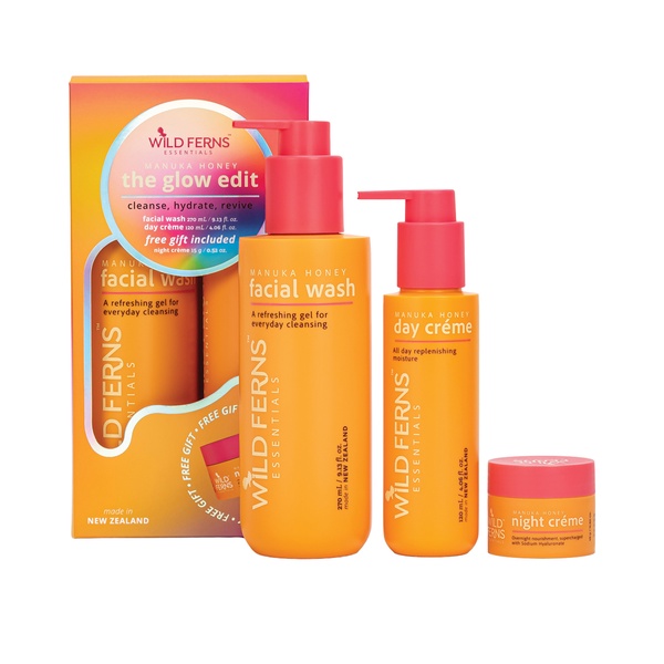 Transform your skincare routine with this luxurious Manuka Honey collection. It includes a refreshing Facial Wash and hydrating Day Crème, plus a free gift Night Crème to deeply nourish while you rest. Reveal your most radiant skin yet. Made in New Zealand.