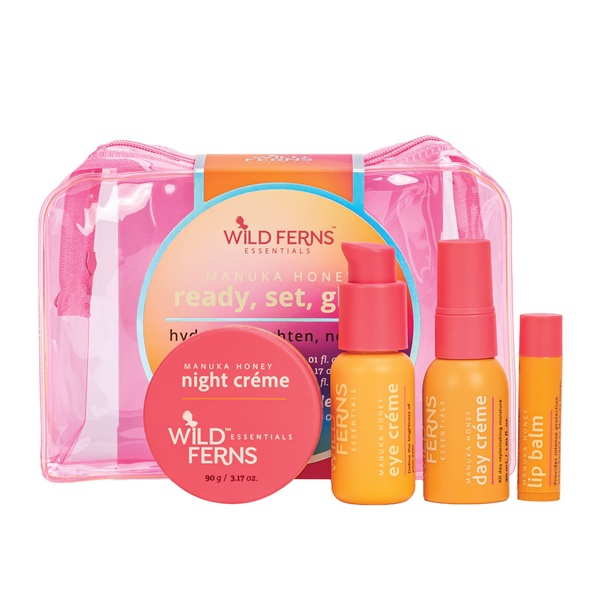 Your complete glow routine in one set. This Manuka Honey trio features a hydrating Day Crème, restorative Night Crème, and brightening Eye Crème, with a free gift Lip Balm to keep your smile soft and smooth. All in a cool cosmetic bag for easy travel. Made in New Zealand.