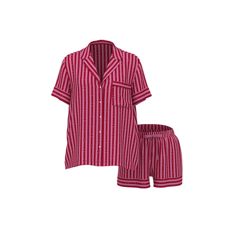 Victoria's Secret Signature Satin Short Pajama Set Lipstick/Rose Garden