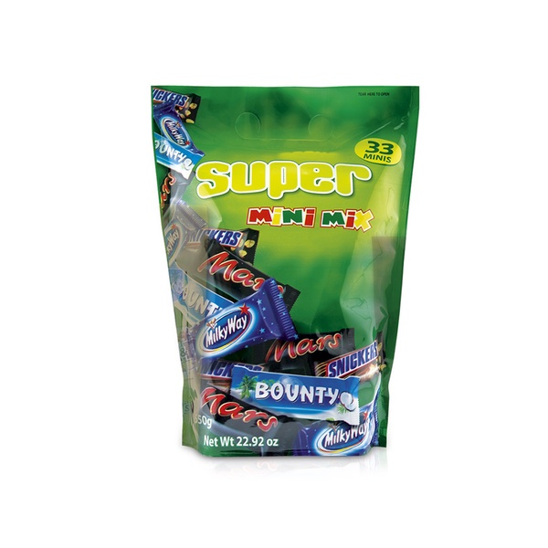 An easy pouch full of all your favourite chocolate bars in a mini-format. Mars, Snickers, Bounty and Milky Way. Share them with all your friends or family – there's plenty to go round.