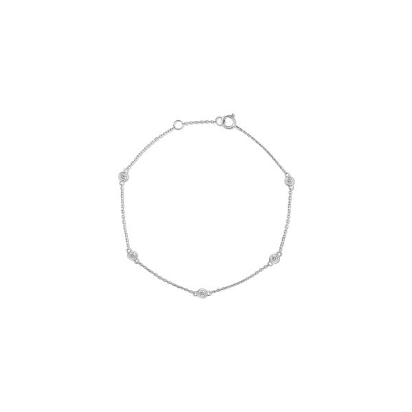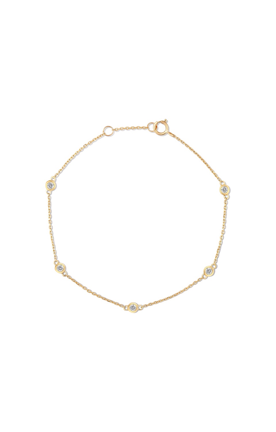 Our Essential Bezel Diamond Bracelet features five bezel set diamonds totaling 0.20ct
