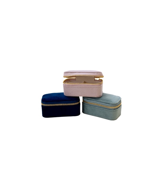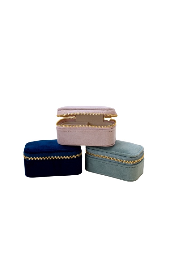 So handy! The small travel jewellery case is available in deep sea blue, soft sage or blush velvet, this handy little guy will keep your Boh Runga jewellery pieces safe and sound while you're on the go.