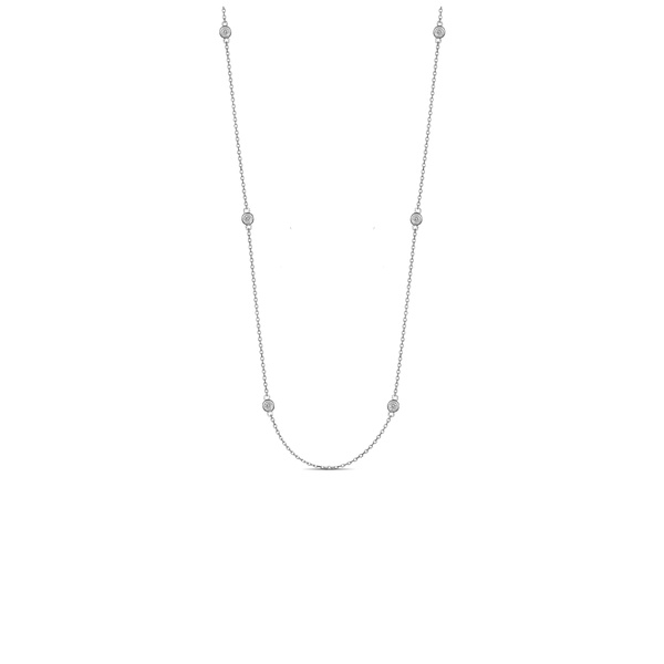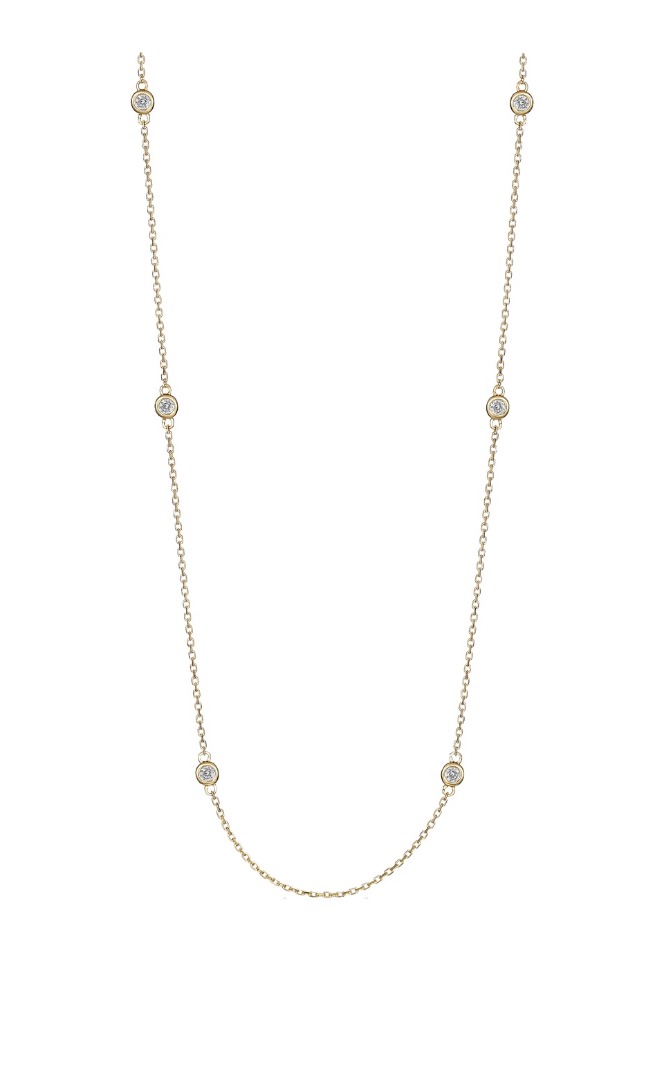 Our Essential 7 Diamond Necklace features seven bezel set diamonds on a round cable chain, totalling 0.30CT.