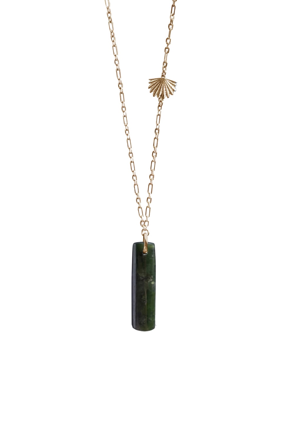 A slim, drop of pounamu adorned with our hero design the pīwakawaka fan tail featured on the chain will become a new classic in your jewellery wardrobe.