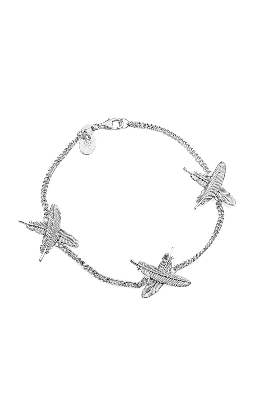 The iconic crossed feathers design you know and love. Wear your kisses on your sleeve with this delicate bracelet featuring three sterling silver feather kisses.