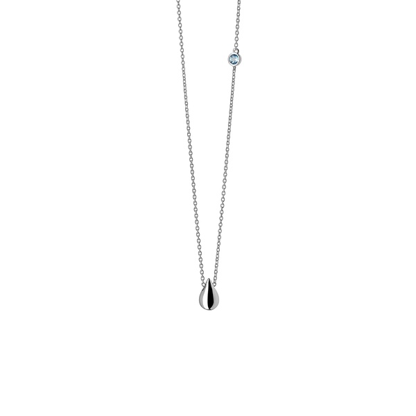 Inspired by the natural elements, the ""Drop in the Ocean"" Pendant is a stunning sterling silver piece showing a droplet captured in motion. With a touch of Blue Topaz set into the chain of this 55cm length pendant (with length adjustments) this piece is stunning for special occasions or casual ensembles.