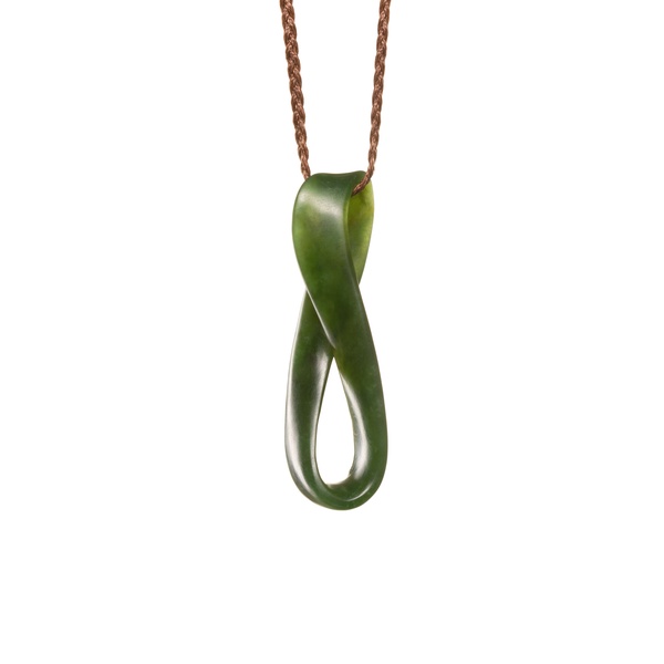 This twist by revered pounamu artist Neil Brown is design perfection. The skill to craft such an elegant piece of work, from a single piece of stone is nothing short of majestic. The stone itself also of the very highest standard; deep and rich New Zealand pounamu (greenstone) running into light translucence.