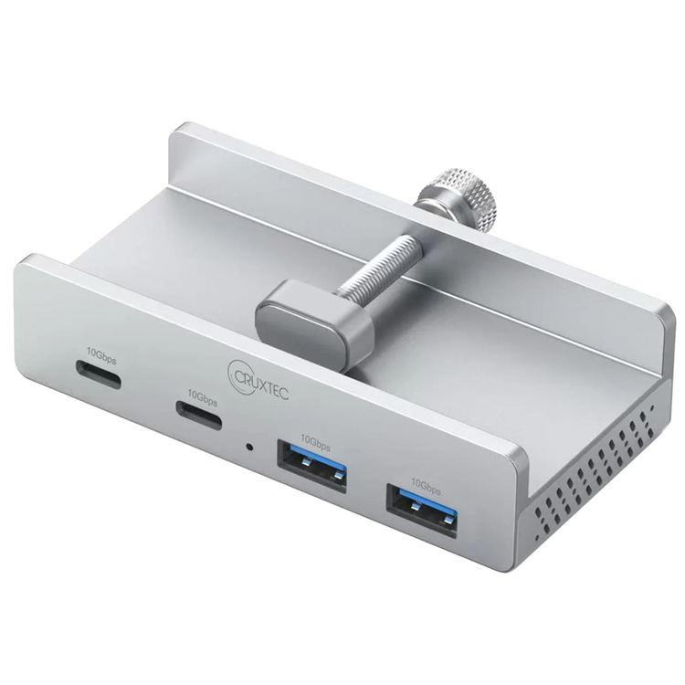 The Cruxtec Clamp-Mounted Hub securely attaches to your desk or monitor with a sturdy clamp, requiring no drilling or tools. Its compact, space-saving design keeps your workspace organized while offering multiple USB ports. Built with premium materials, it ensures durability and a sleek, modern look. Consists of 2 x USB-A ( 10Gbps ), 2 x USB-C ( 10Gbps ) ports Supports data transfer speeds up to 10Gbps Power Input Port: Type-C Female DC 5V Compact, space-saving design keeps your workspace organized Compact design, premium materials