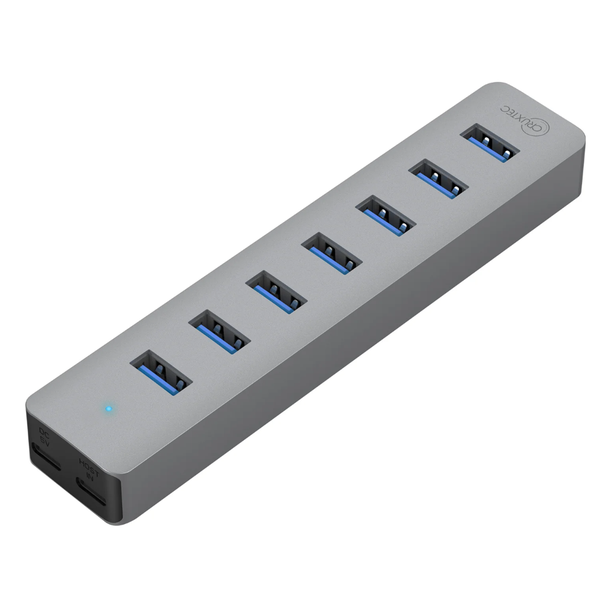 Cruxtec 7-Port USB 3.0 Hub with Type-C Power Port The Cruxtec 7-Port Hub supports a stable data transfer rate of up to 5Gbps and is compatible with USB 2.0/1.0. Equipped with a Type-C DC 5V power input, it ensures enhanced power supply for connected devices. The sleek and durable aluminum alloy casing, along with plug-and-play functionality, makes it easy to use. Consists of 7 USB 3.0 ports Compact and fashion design, easy-to-use, anywhere you go Up to 5Gbps stable data transfer rate, compatible with USB 2.0/1.0 Great Compatibility, Plug-and-play