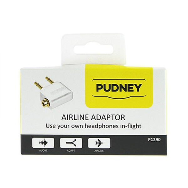 Pudney Airline Adaptor P1290 Use your own headphones in-flight Get the best sound in the air by using your own headphones on most airlines. Plug this adaptor into your seat, and then use your own headphones. - Gold plated A2 plug connector, also compatible with D2 sockets.- 3.5mm socket to fit most headphones.