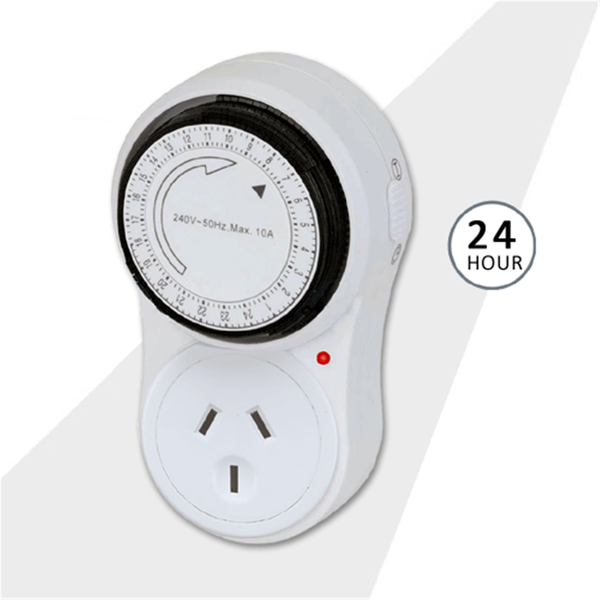 Sansai PAD-029 24 Hour's Timer 24 Hour Mechanical Timer Switch: The 24 Hour Easy Set Timer is ideal for use with heaters, electric blankets, lamps, coffee machines, Christmas lights, washing machines -virtually any electrical appliance. - With on-auto switch - Easily set timer in 15-minute intervals - 24-hour programmable cycle - Ideal for lamps and seasonal items - Power supply: 220-240V AC, 50Hz - Maximum load: 10A, 2400W - Use timers to help reduce power *Warning: For Indoor Use Only