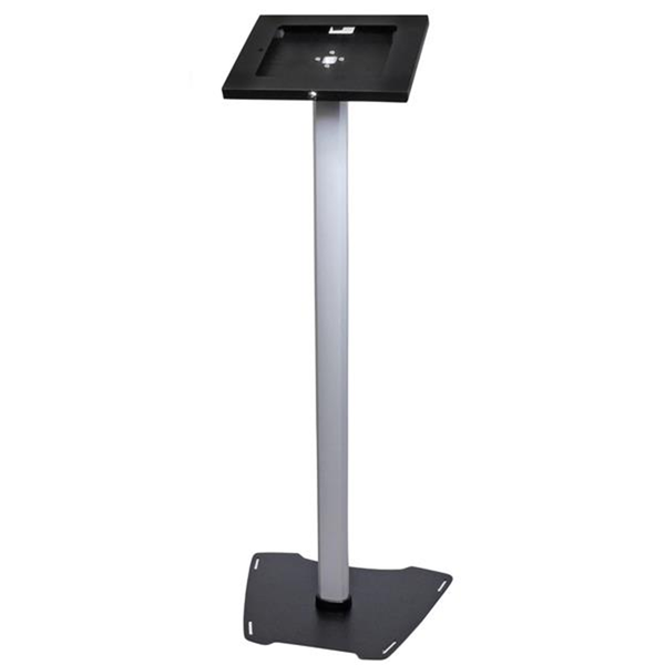 Give customers instant access to new product information. Or connect customers to your own app, to create an engaging user experience. The tablet floor stand for iPad provides an impressive way to interact with your customers, and collect customer data. It's ideal for lobbies, trade-show booths, retail environments and information kiosks. You can use multiple stands throughout each business location or tradeshow display, to gain maximum exposure and impact. Your iPad kiosk can alert customers to special sales. It can promote special menu offerings for restaurant guests, or allow hotel patrons to reserve seating or rooms. The applications are virtually limitless. Create an attractive, durable displayThe attractive metal tablet stand provides an impressive display unit for your iPad, in either a portrait or landscape position. The fixed-height stand (approx. 42 in. / 1060 mm high) provides a consistent viewing experience. The Home button on the iPad is covered, allowing you to direct users to specific information or apps, while preventing them from viewing non-related apps or pages. The pillar-style stand provides built-in cable management to ensure your impressive display stays neat and tidy. Keep your tablet safe and secureThis durable fixed-height tablet stand lets you create a powerful standalone kiosk, while protecting your tablet. You simply place your iPad in the steel enclosure to help protect it from loss or damage. The secure locking mechanism helps guard against theft. The tablet stand features a lockable tablet holder for increased security and a base that you can screw into the floor to create a fixed-in-place holder. The stand's robust steel and aluminum construction provides long-lasting performance with maximum protection and stability.