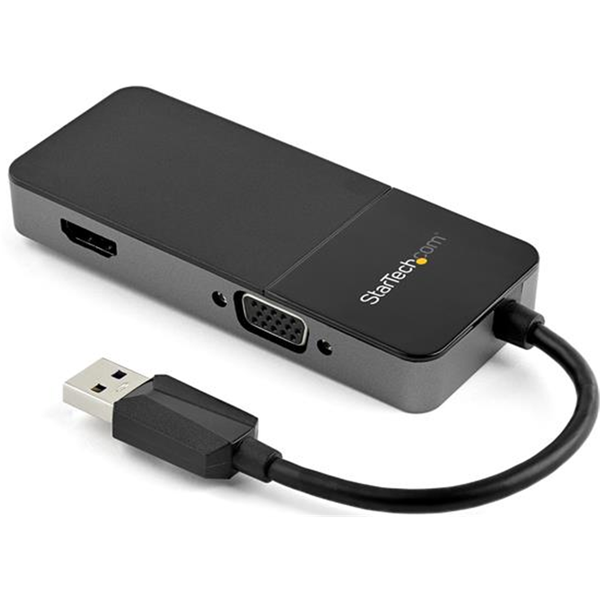 Maximize your laptop's video compatibility with a 2-in-1 adapter: USB-A to HDMI® and VGA Support resource-demanding applications with UHD resolutions up to 4K 30HzBoost your productivity by creating a dual screen workstation in the office or while traveling This USB 3.0 to HDMI VGA adapter offers a portable solution for connecting an HDMI and VGA display to your USB-A laptop or desktop computer. The multiport video adapter lets you mirror or extend content on two additional monitors simultaneously (1 x HDMI and 1 x VGA), creating a dual-screen workstation. Enhance Your Productivity Functioning as an external graphics card, this multi-display adapter provides a convenient way to add multi-monitor capability to a USB 3.0 desktop or laptop computer. Leveraging the USB 3.0 interface, the adapter delivers high-definition content to your HDMI and VGA displays. The adapter can be used to mirror your primary desktop, or to extend your desktop to double your workspace and increase your productivity. Two-in-One Video Connectivity with Travel in Mind Avoid the hassle of carrying different adapters. This USB 3.0 video converter provides both HDMI and VGA outputs, you can conveniently connect your laptop to any HDMI and VGA-equipped display or projector, using this multiport adapter. The lightweight dongle also features a small footprint, making it the perfect accessory for professionals on-the-go. Astonishing 4K Picture Quality The HDMI output on this USB 3.0 video adapter supports UHD resolutions up to 4K 30Hz, while the VGA output supports HD resolutions up to 1920 x 1080, ensuring you won't have to sacrifice picture quality. USB32HDVGA is backed by a StarTech.com 3-year warranty and free lifetime technical support.
