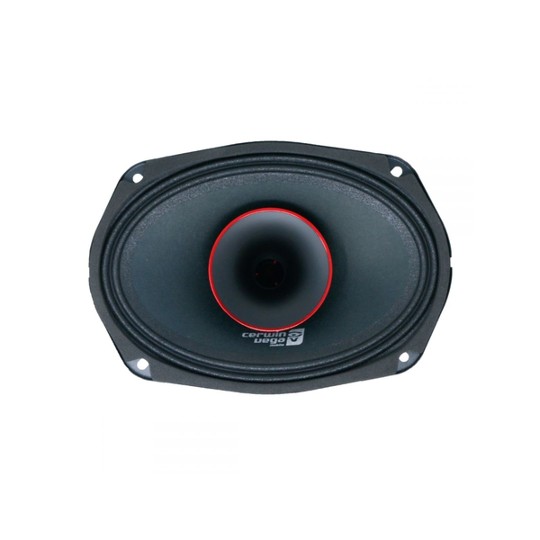 PRO SERIES MIDRANGE SPEAKERS borrow from the heritage of CERWIN-VEGA'S PRO AUDIO legacy by reproducing insane SPL levels that will tingle all your senses. Create your own listening experience and concert environment with an assortment of high output PRO SERIES SPEAKERS and TWEETERS that CERWIN-VEGA MOBILE has to offer. Features 6 X 9" PRO Full-Range Co-Ax Horn Speaker160W RMS/320W MAX Power HandlingFerrite Strontium High Temp Magnet StructureHeavy Duty Stamped Steel BasketAdvanced Voice Coil Heat Sink Design for better Heat Dissipation1.5" Double Layer High Temp Voice Coil with Black Coated Voice Coil former for Woofer1.0" Single Layer High Temp Voice Coil with Voice Coil former for TweeterFrequency Response: 80Hz -18KhzHigh Sensitivity 101dB 1W/1M12dB 2nd Order Filter Crossover for better Protection of the TweeterMounting Depth: 3.90" / 99mmMounting Diameter: 8.74" x 5.98" (222 x 152mm) Dimensions