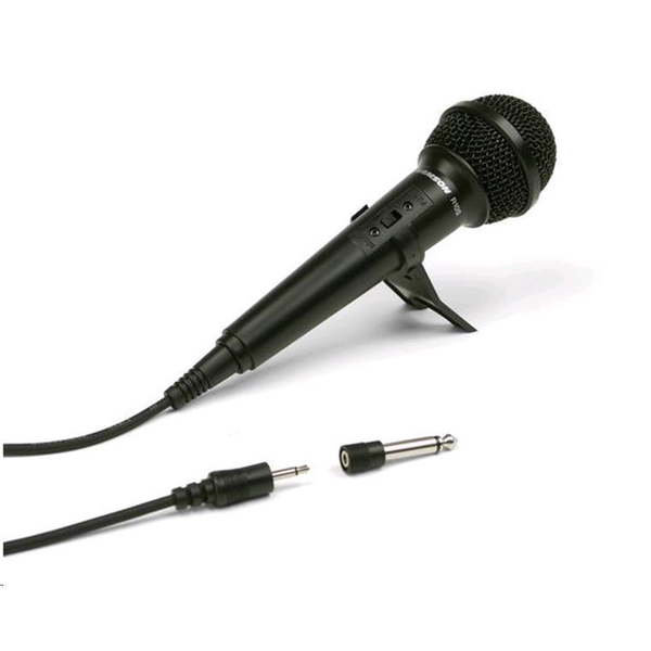 Samson R10S Dynamic Handheld MicrophoneThe R10S from Samson is a dynamic handheld microphone that has a neodymium, multi-axis, shock-mounted mic element, and a cardioid pickup pattern. It can be used to capture audio in a variety of recording and recreational applications such as karaoke, multimedia, portable recording, and more. - For Multimedia and Portable Recording- Cardioid Pickup Pattern- 80 Hz to 12 kHz Frequency Response- On/Off Switch- Hardwired Mic Cable with 1/8" Connector- 1/8 to 1/4" Mono Cable Adapter- Includes a Desktop Stand The R10S microphone features an 80 Hz to 12 kHz frequency response, and is suitable for vocal and speech applications. It is built with an On/Off switch as well as a hardwired mic cable with an 1/8" connector. For added versatility, a 1/8 to 1/4" mono cable adapter and a desktop stand are also included.