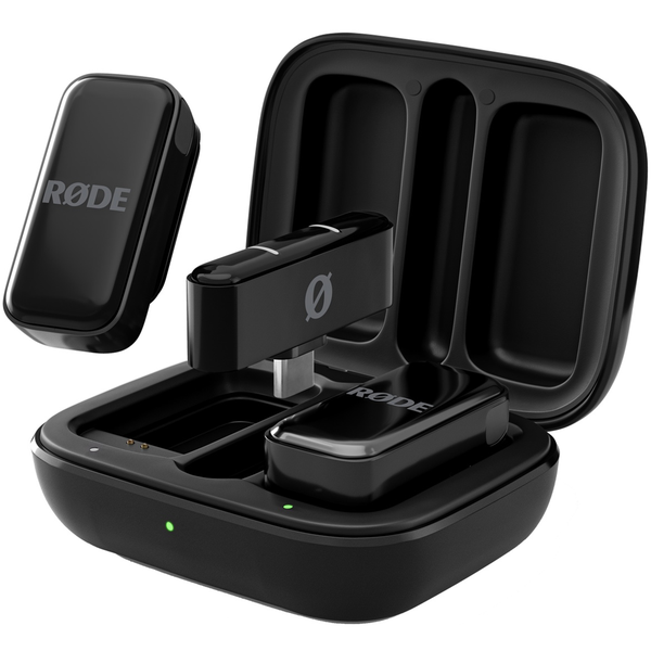 Black USB-C Ultra-compact Wireless Microphone The Wireless Micro is a pocket-sized solution for capturing pristine audio with your smartphone. It connects directly to your phone with no cables required and features two clip-on transmitters with in-built microphones, so you can get recording in seconds. Intelligent GainAssist technology will ensure your audio is perfect in any environment and with up to 21 hours of battery life using the included charging case, it is the ideal grab-and-go microphone for smartphone content creation. - Ultra-compact wireless microphone for smartphones- In-built microphones and automatic pairing makes it incredibly easy to use- Receiver connects directly to a smartphone with no cables required (USB-C or Lightning version available)- Patent-pending acoustic chamber design purpose-built to capture exceptionally clear and intelligible audio while mitigating wind noise- Intelligent GainAssist technology automatically controls audio levels for perfectly balanced sound in any application- Pocket-sized charging case provides additional two charges for up to 21 hours battery life, making it the ideal grab-and-go companion- Ultra-compact, ultra-lightweight form factor with a sleek design for discreet on-camera presence and elegant aesthetic- Additional furry windshields included- Works seamlessly with RODE's free iOS video app, RODE Capture, as well as RODE Central and RODE Reporter- Available in both black and white